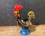 VTG Handpainted Metal Rooster Toothpick Holder Folk Art Colorful Portugal 3”