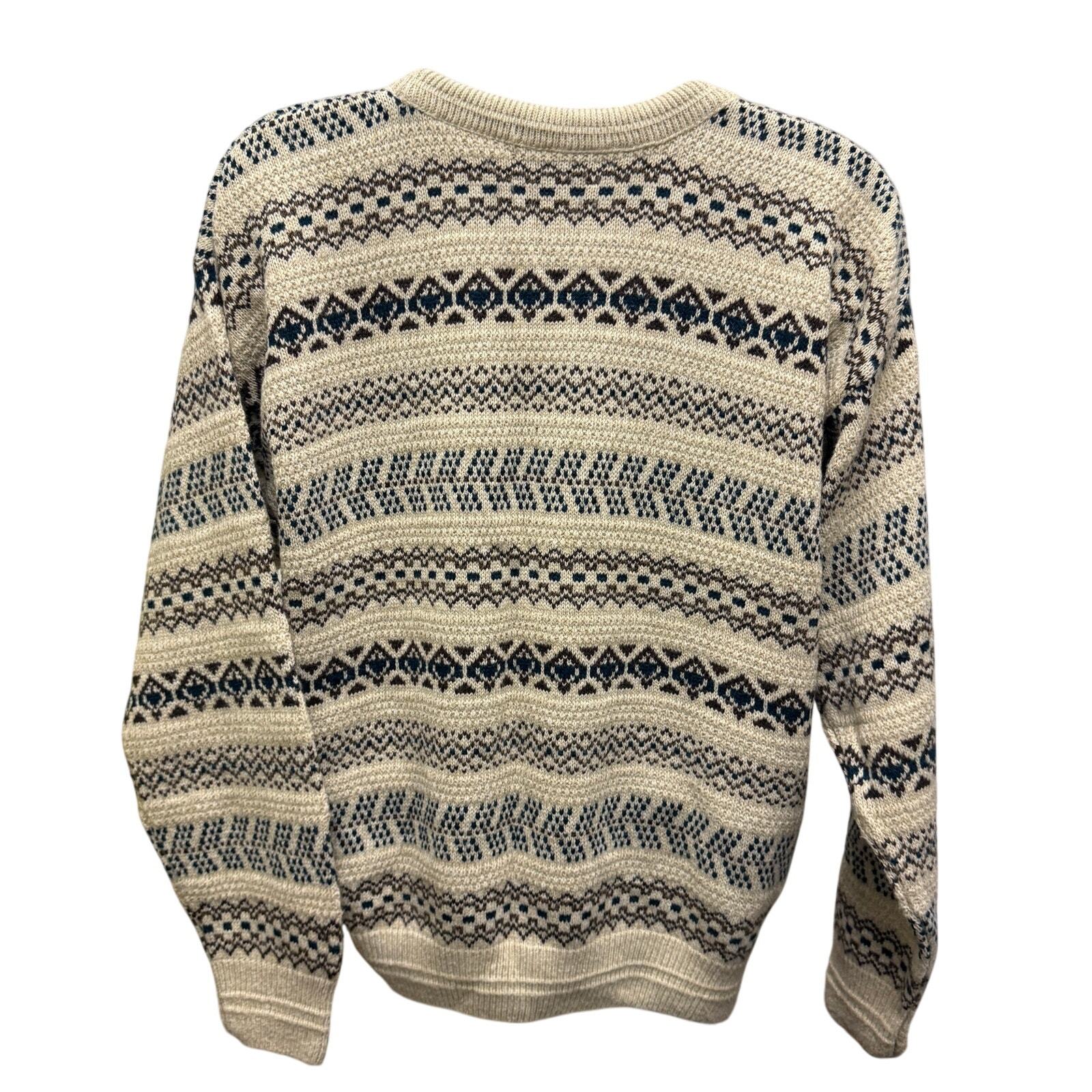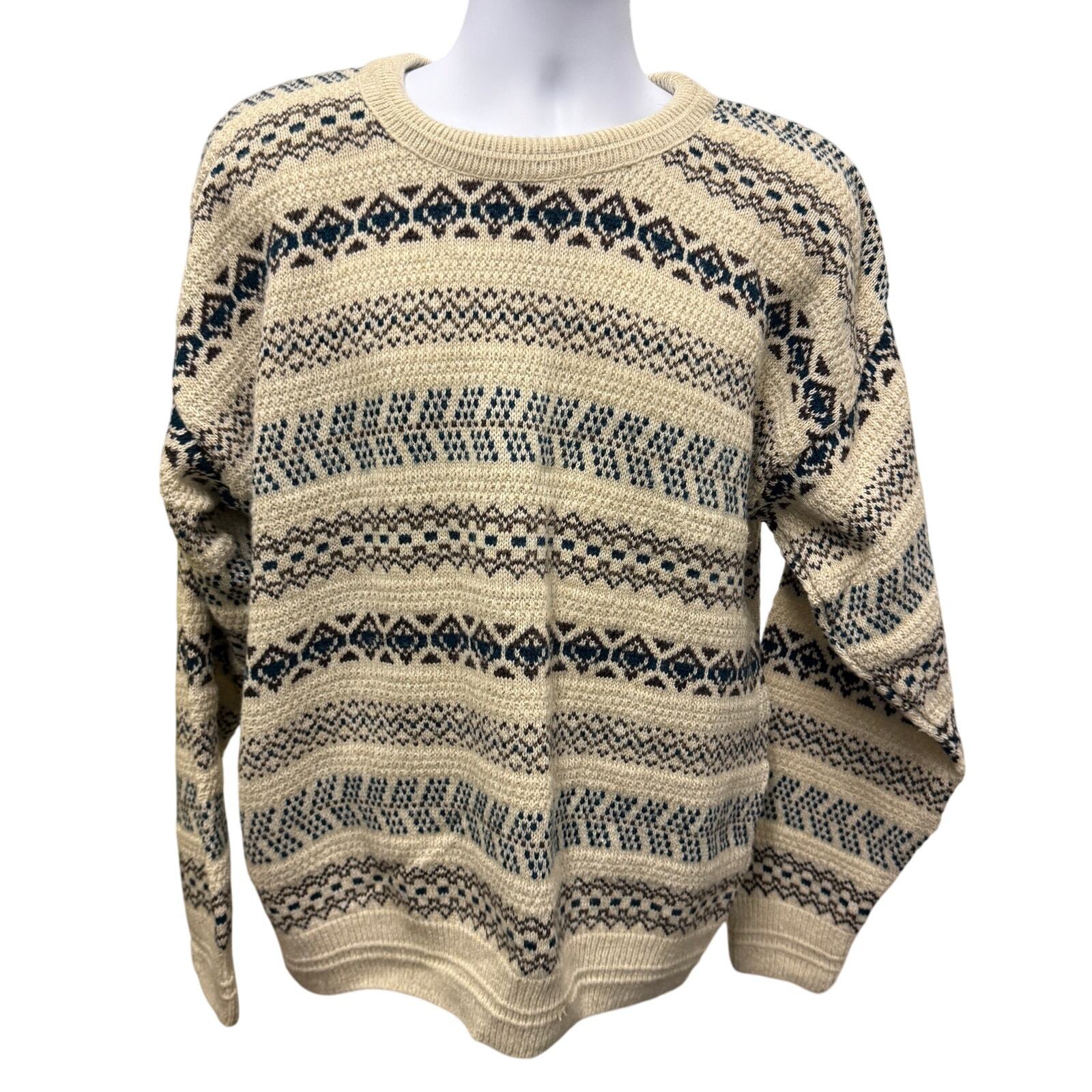 VTG Jantzen Men's Sweater Knit Large Made In USA Nordic Tan Brown Blue Geo