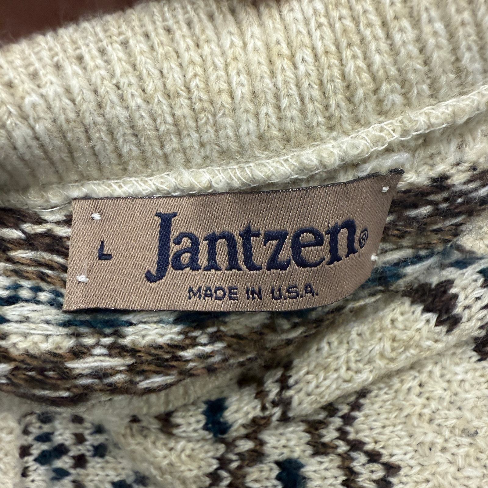 - VTG Jantzen Men's Sweater Knit Large Made In USA Nordic Tan Brown Blue Geo