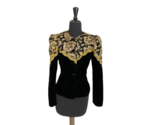 VTG Jessica McClintock Jacket Black Velvet Gold Lace Embellished Evening Sz S