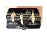 - VTG Jewelry Box 10"x7" Black Lacquer MOP Abalone Hand Painted Asian Oriental