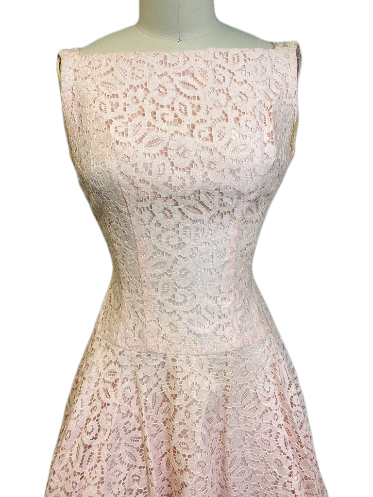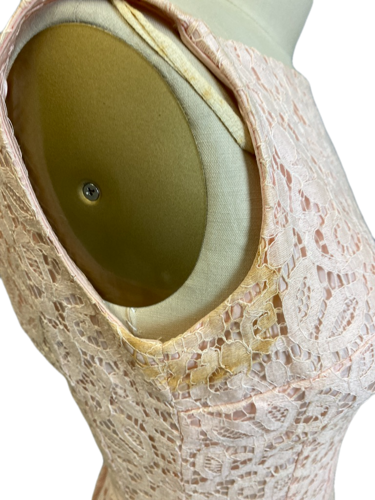 Vintage 1950s Junior Theme dropped waist dress, size XS (bust 34?, waist 26?), featuring a full skirt, complete lining, and sturdy back metal zipper. A versatile foundation piece with classic mid-century styling, perfect for restoration, dyeing, or display.