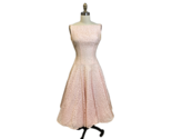 The Junior Theme label specialized in youthful women?s dresses in the 1950s, often styled with flattering silhouettes and quality fabrics at accessible prices. Dresses like this epitomized the everyday elegance of the postwar American wardrobe.