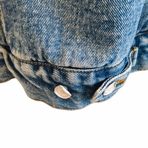 The short length and regular fit of the jacket make it suitable for both casual and workwear occasions. The blue denim fabric type and solid pattern give it a timeless look, and its size L fits most men. This jacket is machine washable for easy care. Get ready to stay warm and look stylish with this vintage Lee jacket! There is distressing around the bottom of the sleeves as shown, also there is some stains near the front bottom and small white paint marks throughout as shown also, on the jacket. Lastly, there are a few buttons missing. Please refer to all pictures as this is a timeless classic with a rugged grunge look that is awesome!