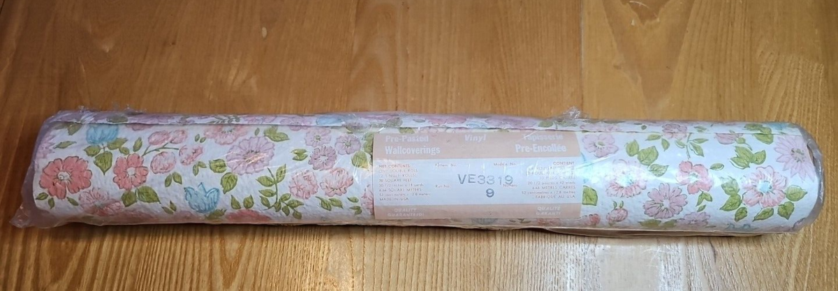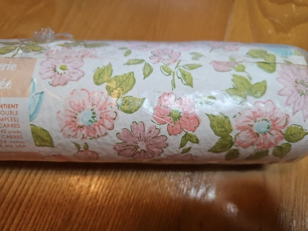 UP FOR SALE: Vintage Lennon Co Pre-Pasted Floral Vinyl Wall Paper 1 Dbl Roll 70 Sq Ft VE 3319