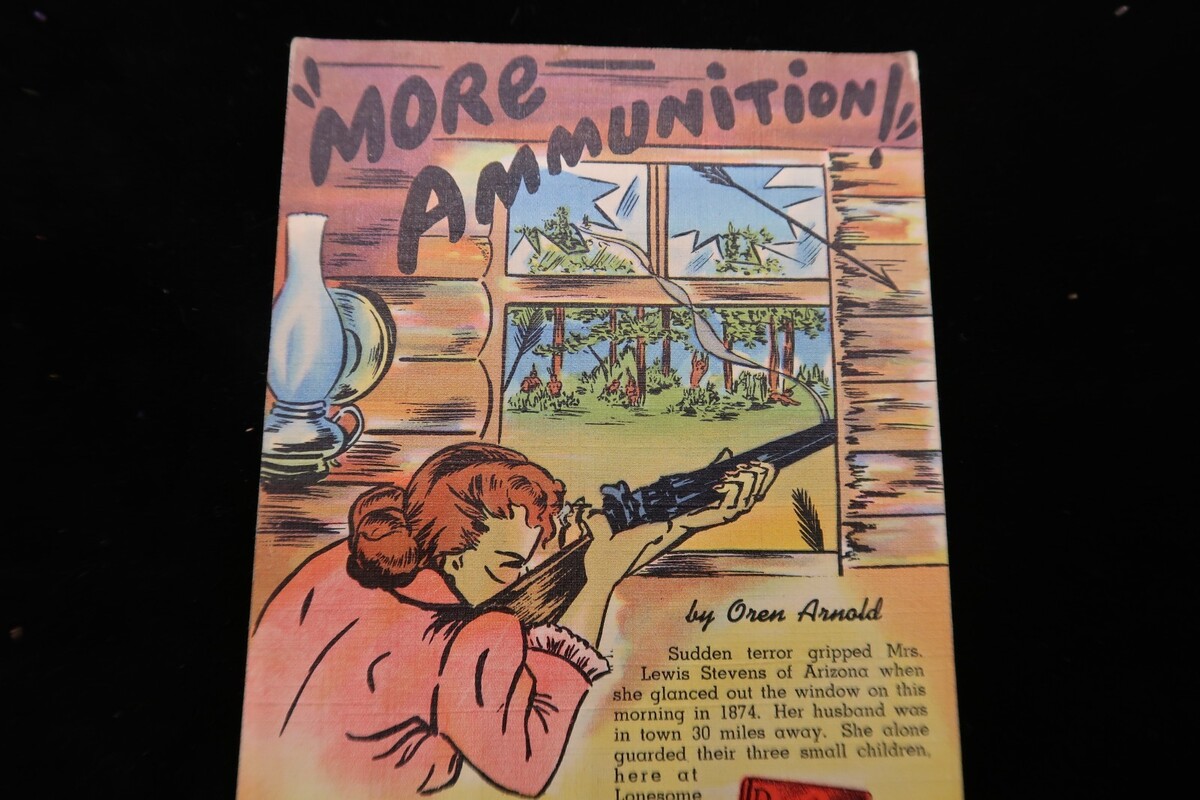 - VTG Linen Postcard #11 More Ammunition Oren Arnold True Stories Wild West