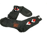 VTG Men's Acrylic Rayon Blend Dress Socks Gray W Pattern 1940-50s NOS VTG+ 1, have black, red and white intaglio designs.