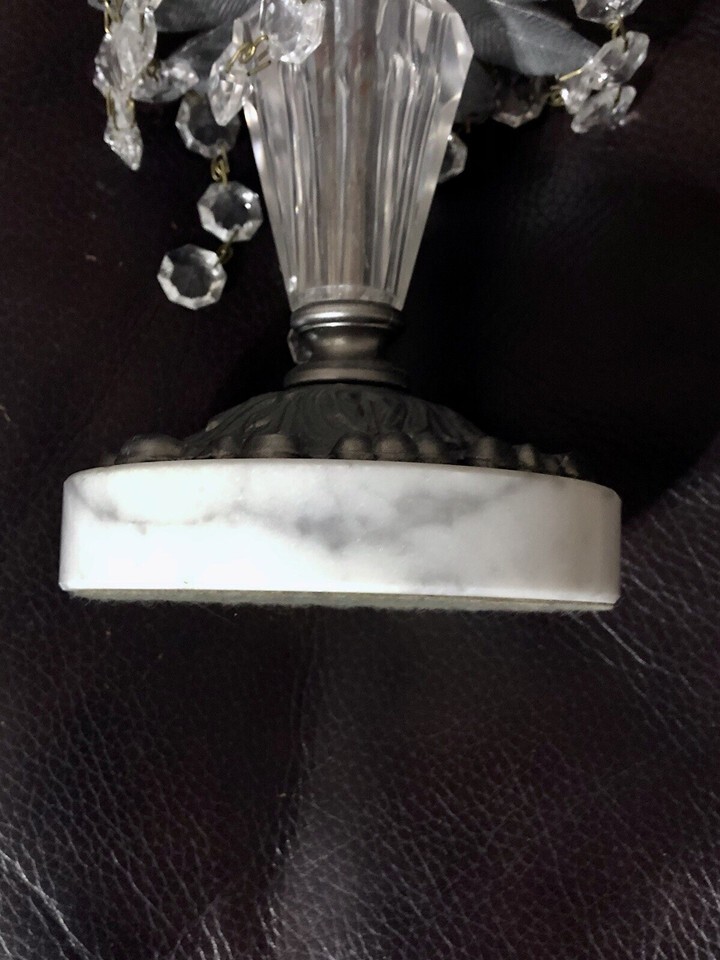 - VTG Mid Century Brass Crystal Candle Holder Italian Marble Hollywood Regency