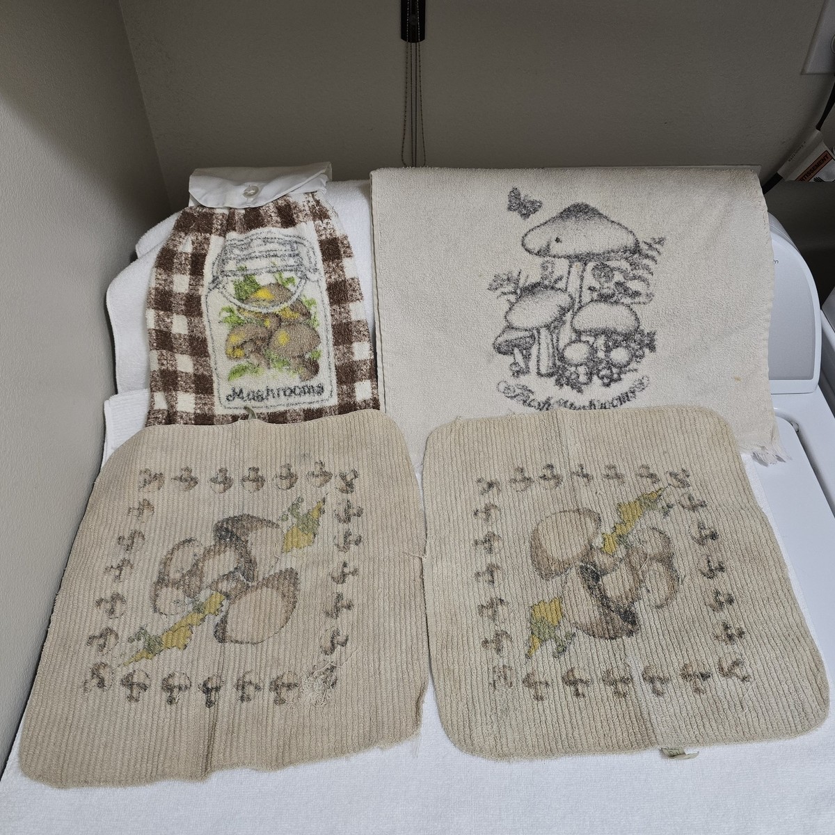 - VTG Mushroom Lot Of 6 Random Dishtowels Washcloths Well Used / Worn See Photos