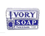 based on the design, this bar of Ivory soap likely dates from the 1950s to the 1970s. The packaging features a seal that references the year 1837, which is when Procter Gamble was founded. The specific design with the moon and stars, and the "Procter Gamble" name printed below the product name, was a common style for the brand during that period. In 1985, Procter Gamble removed the moon and stars logo from their products, making this a key detail for dating the item.