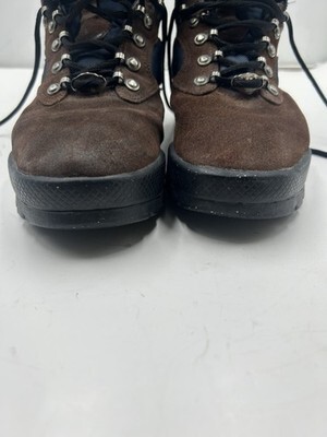 The product is a pair of women's size 8 hiking boots from Nike's Air ACG Chugach line. These boots are made of brown and purple leather, with a medium width. While they are not insect repellent treated, they are designed for hiking and outdoor activities, providing comfort and support for various terrains. The Nike brand ensures quality and durability, making these boots a reliable choice for outdoor enthusiasts.