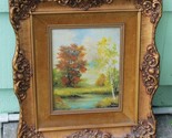 - VTG Oil Painting Fall Still Life Trees Water Signed Original Ornate Wood Frame
