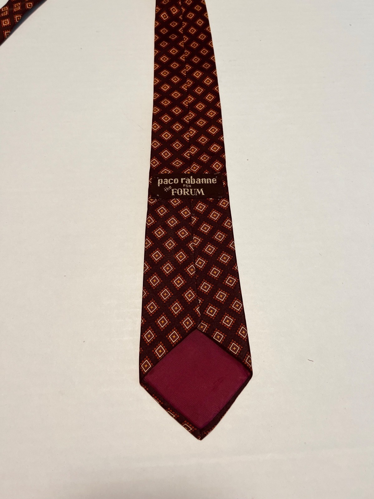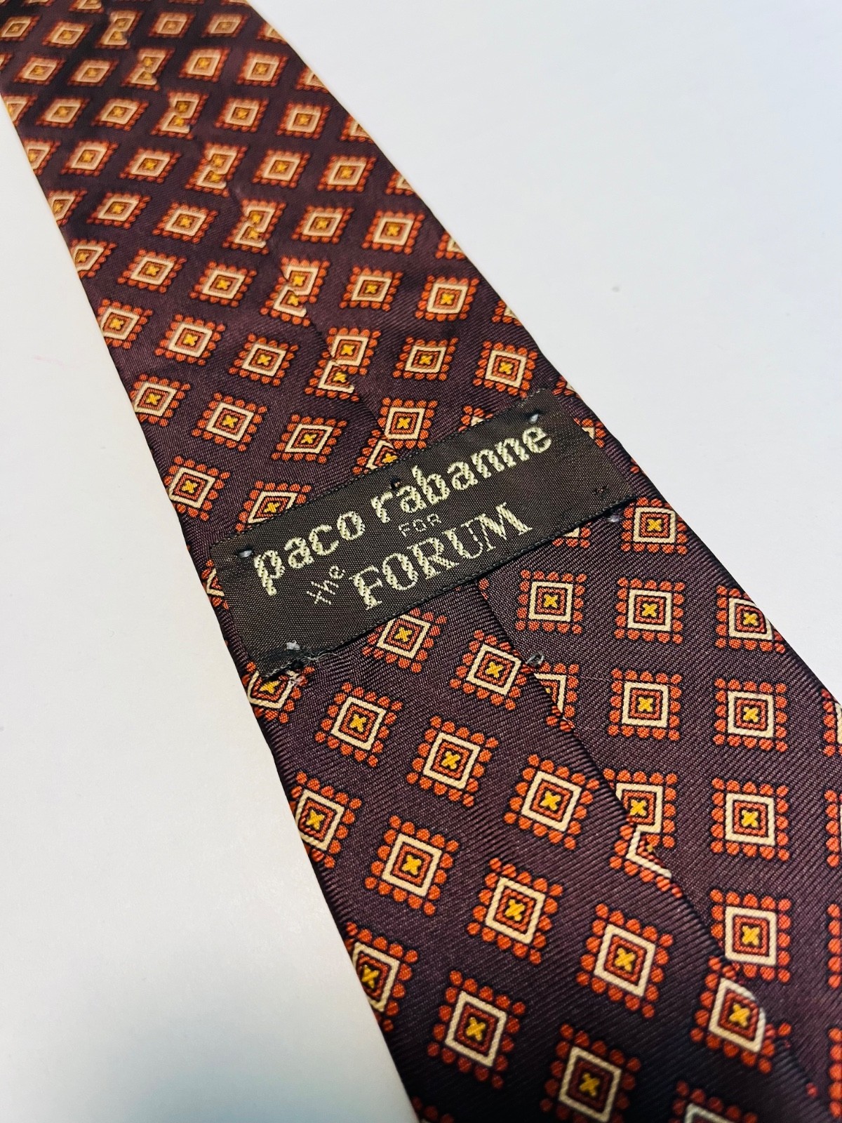 - VTG Paco Rabanne Brown Diamond Geometric Pattern Silk Neck Tie Made in Italy