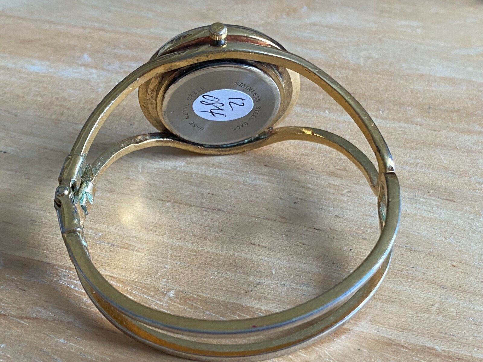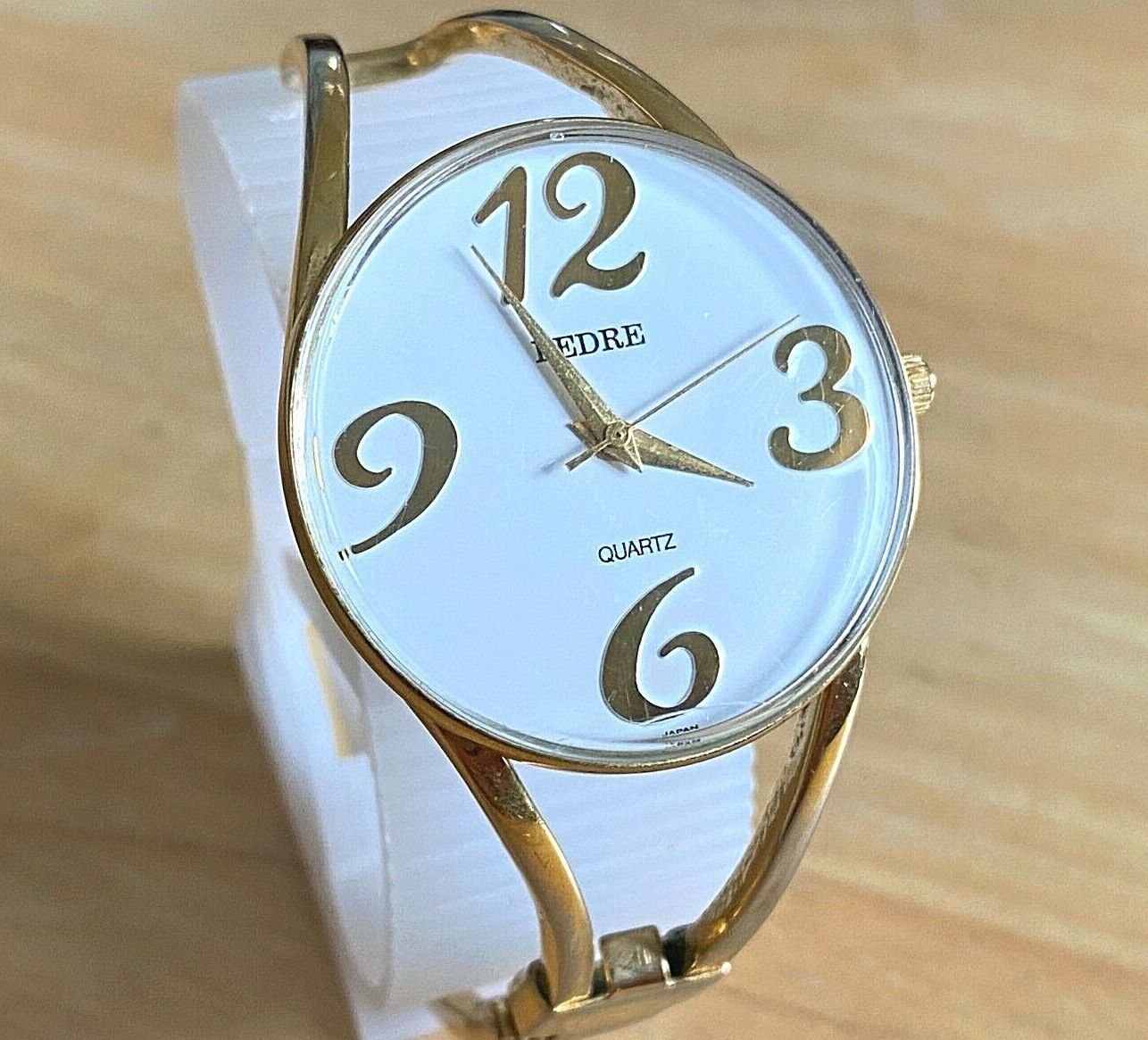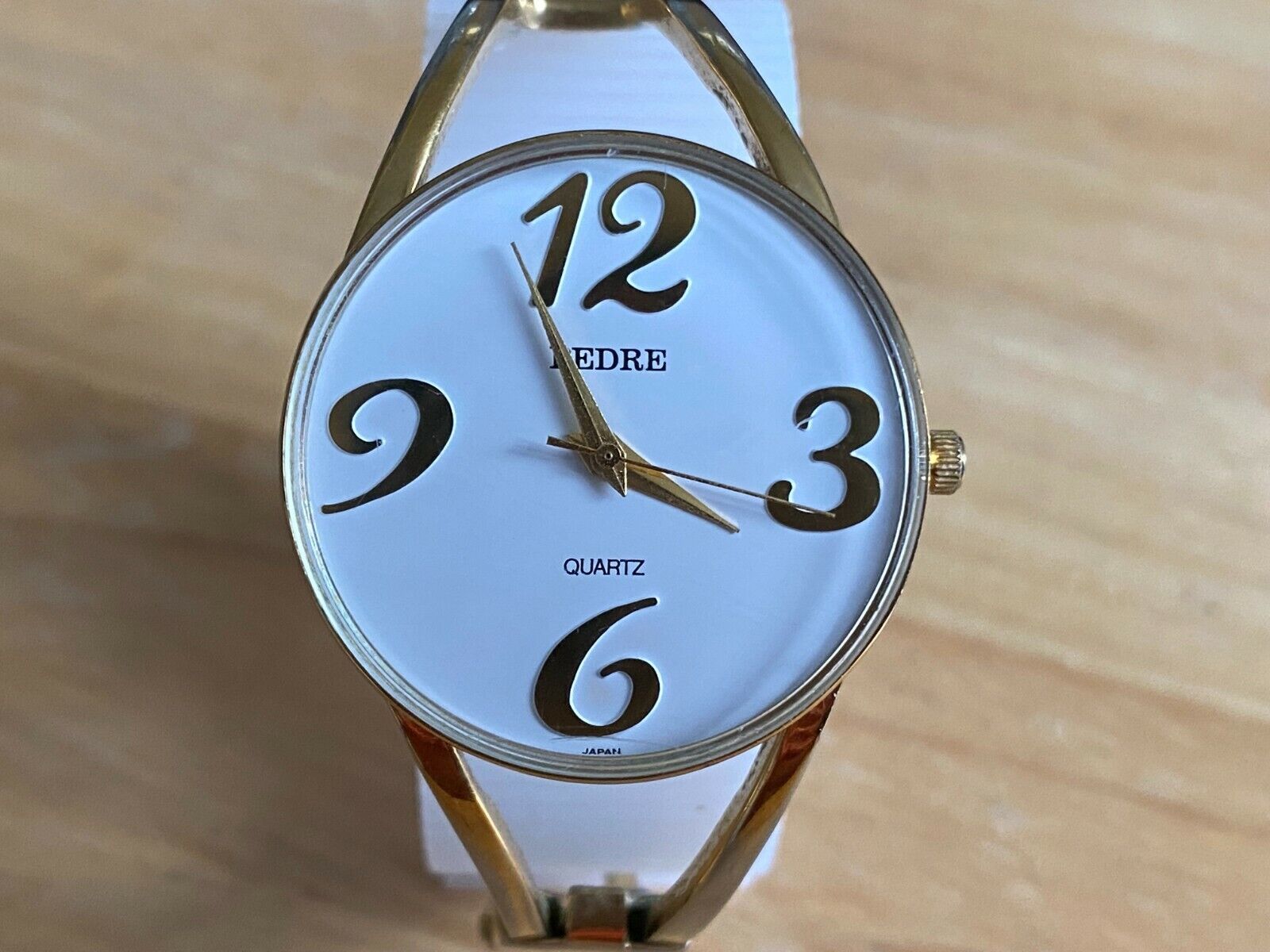 - VTG Pedre Lady Gold Tone White Dial Cuff Bangle Analog Quartz Watch New Battery