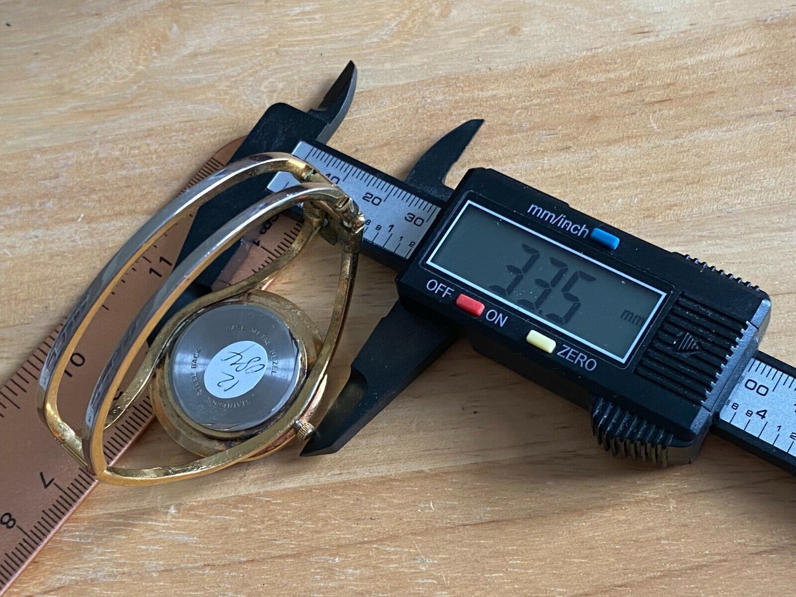 Watch dimension and size: please review the last image for size measurements. Shown on caliper is the approximate watch width in mm without crown or button.