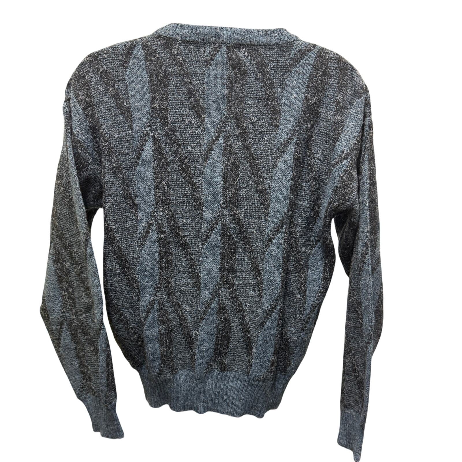 - VTG Peter England Crewneck Sweater Mens Large Black Blue 3D Grandpa Geometric