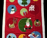 VTG Pottery Barn Kids Embroidered Velvet Christmas Santa Snowman Quilt 49x36”