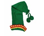 VTG RETRO 1950s Hand Knit Stocking cap Long Green/Red wool Knit with Pom Poms