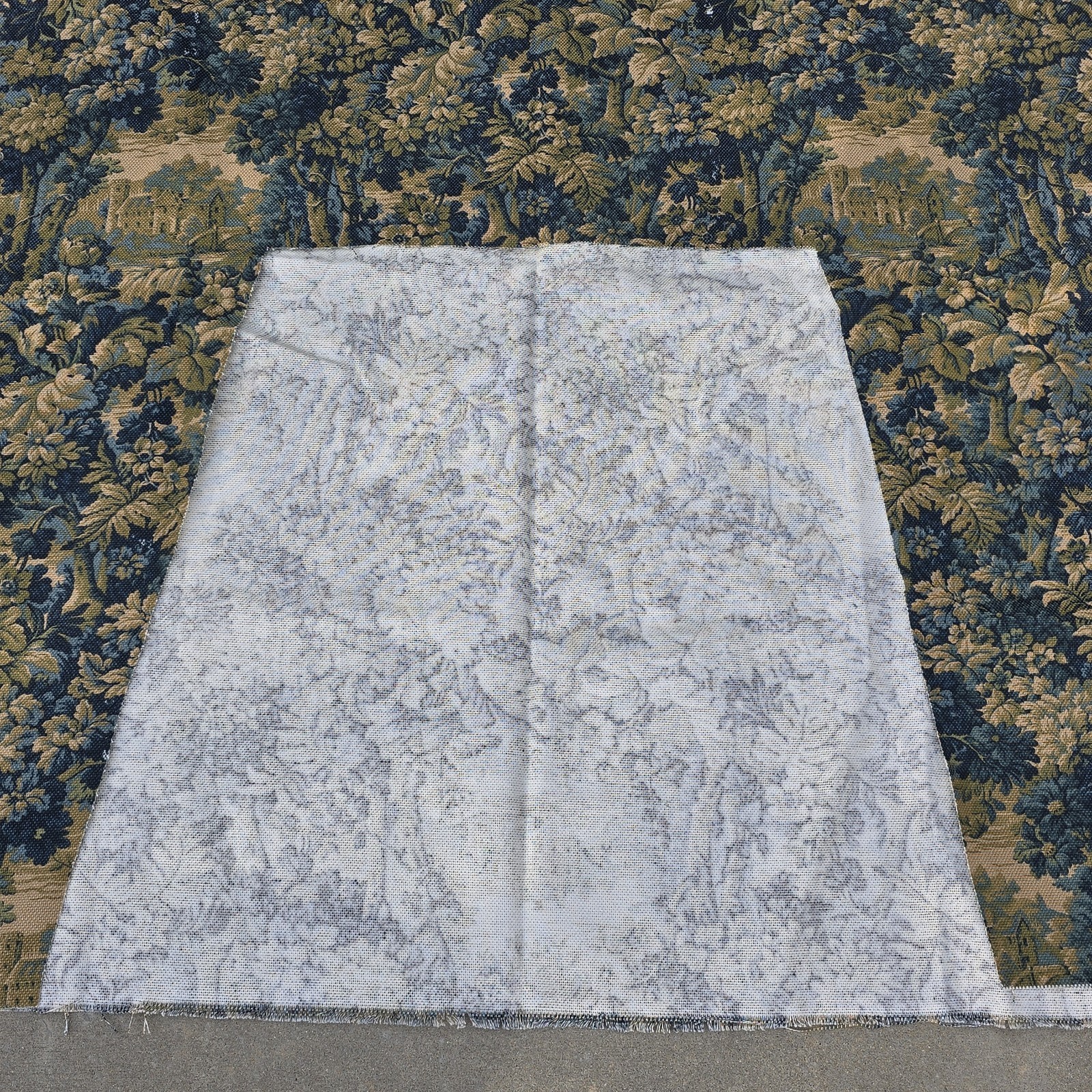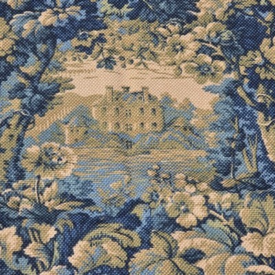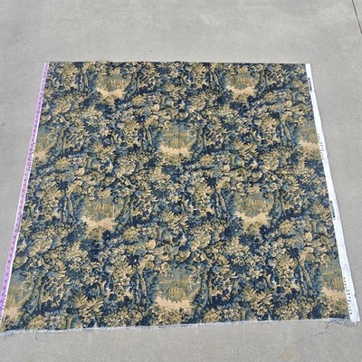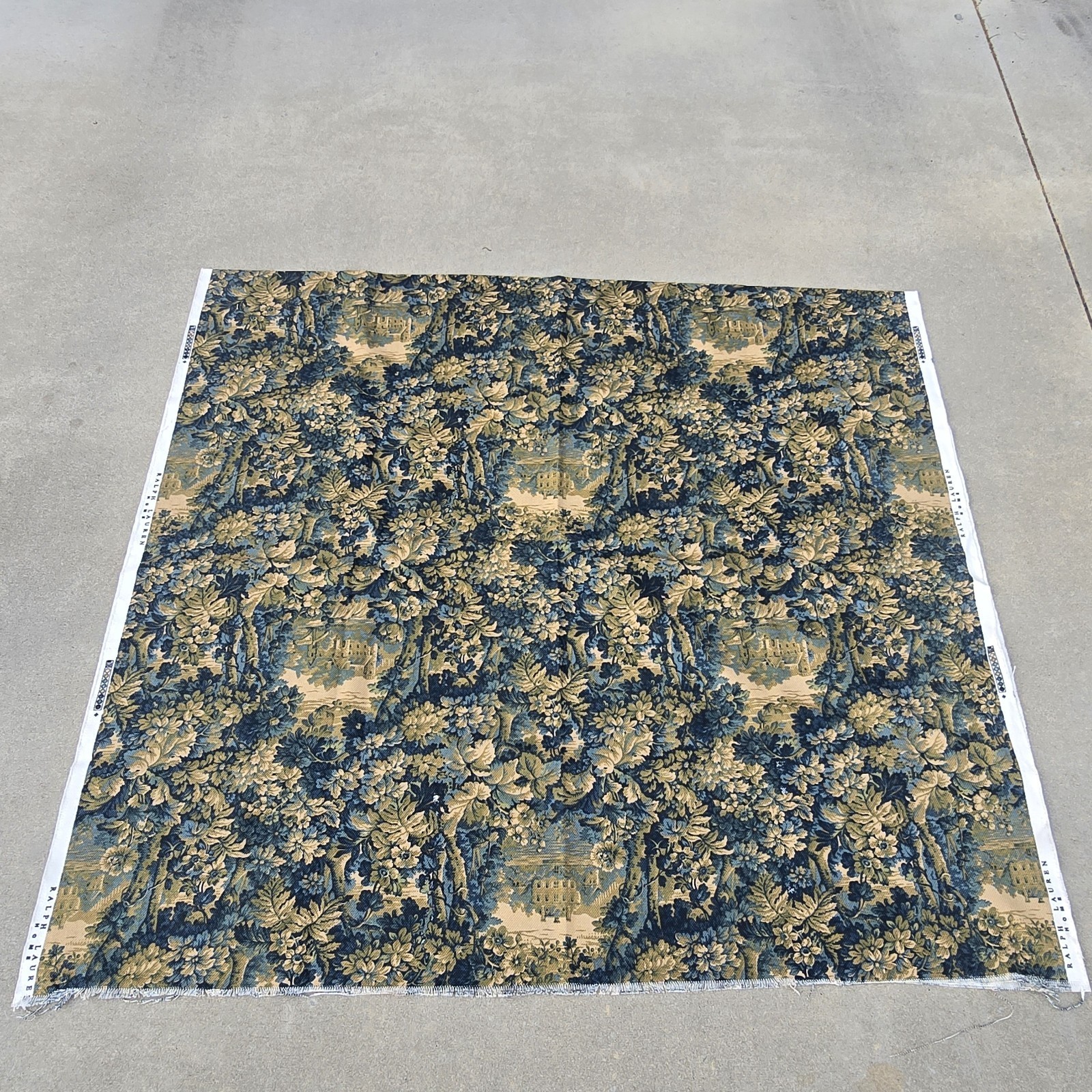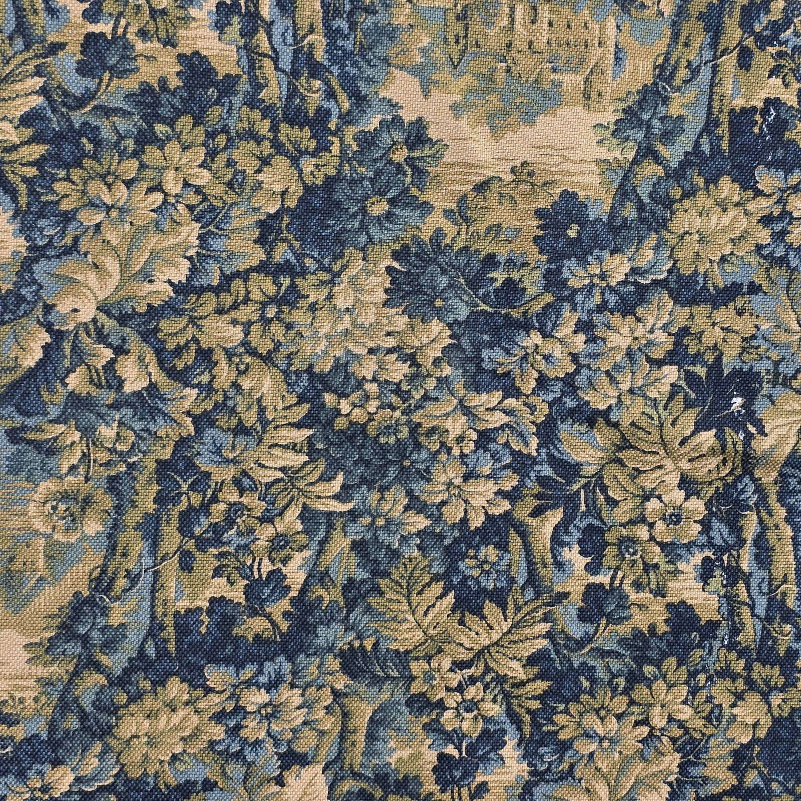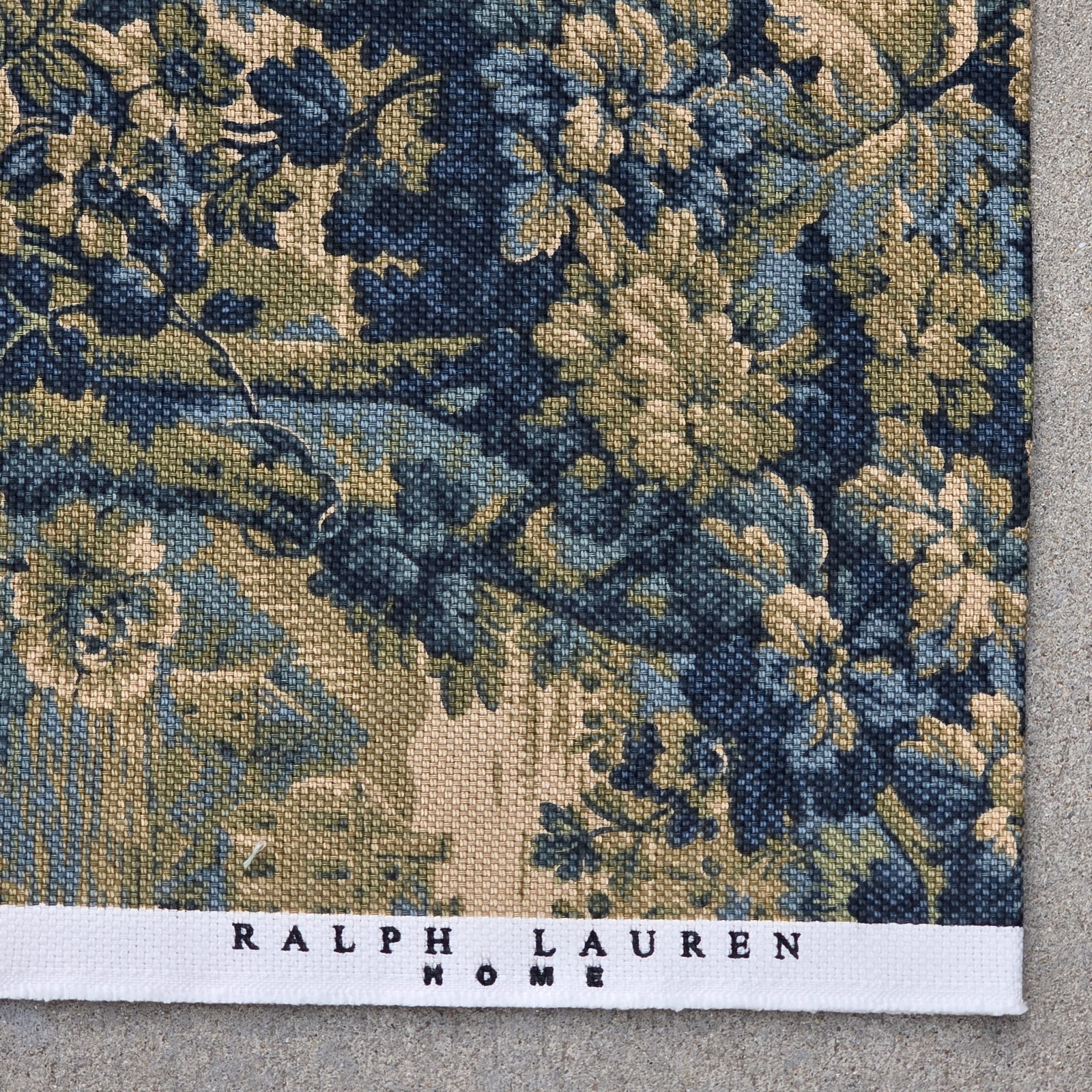 - VTG Ralph Lauren Home Blue Gold Toile Scenic Floral Manor Fabric 50x56 READ