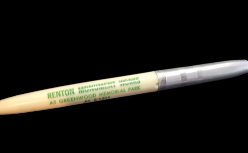 UP FOR SALE: VTG REdipEn Renton Monument Works at Greenwood Memorial Park Pen Advertisement