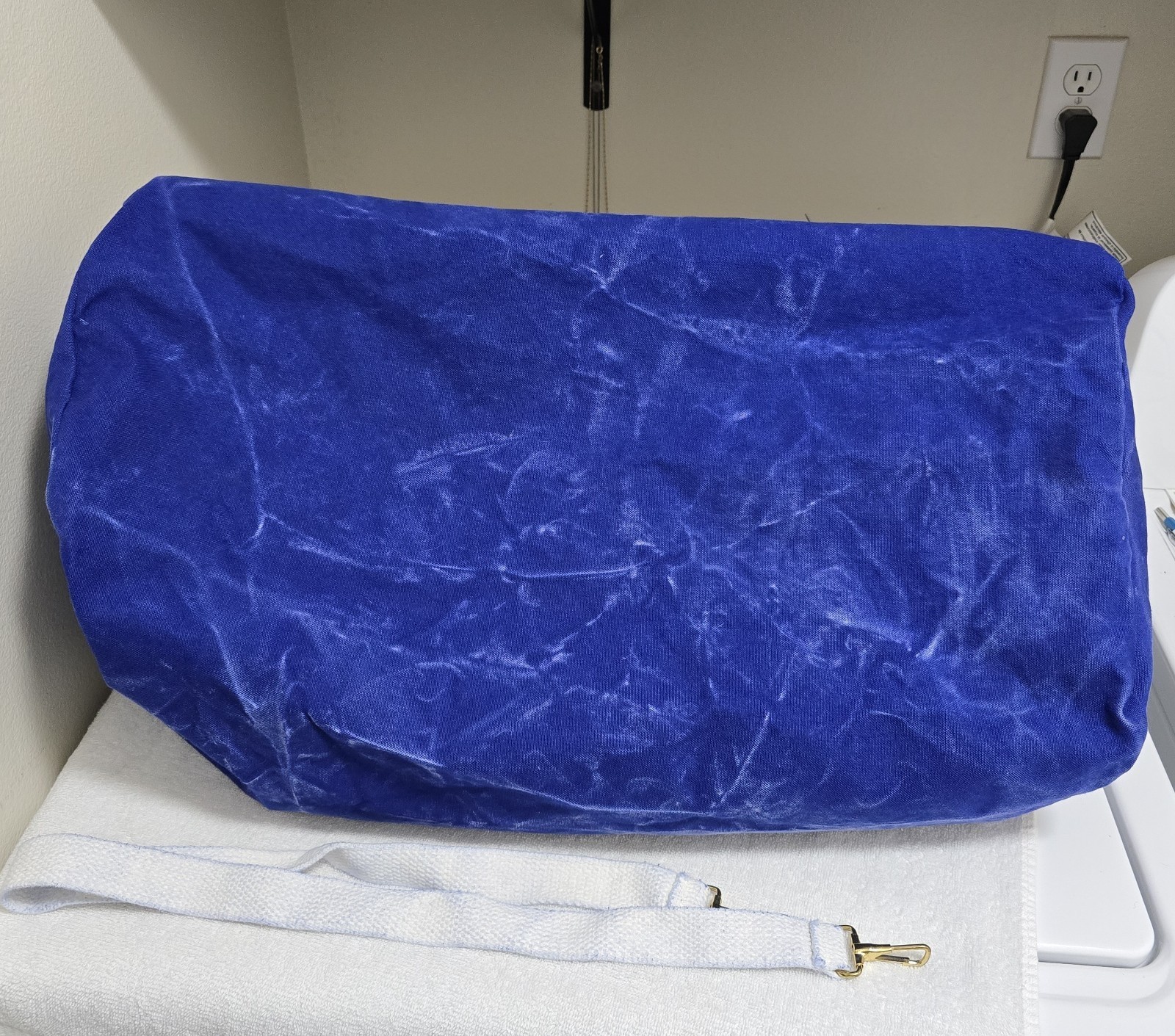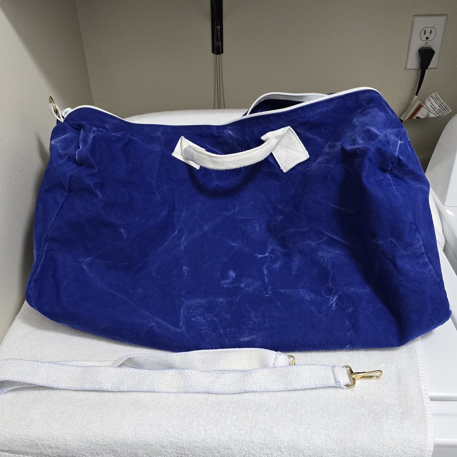 ***Beautiful Duffle Bag- The white handles and strap have a little bit of blue color wash that transferred to them. Please See Photos!***
