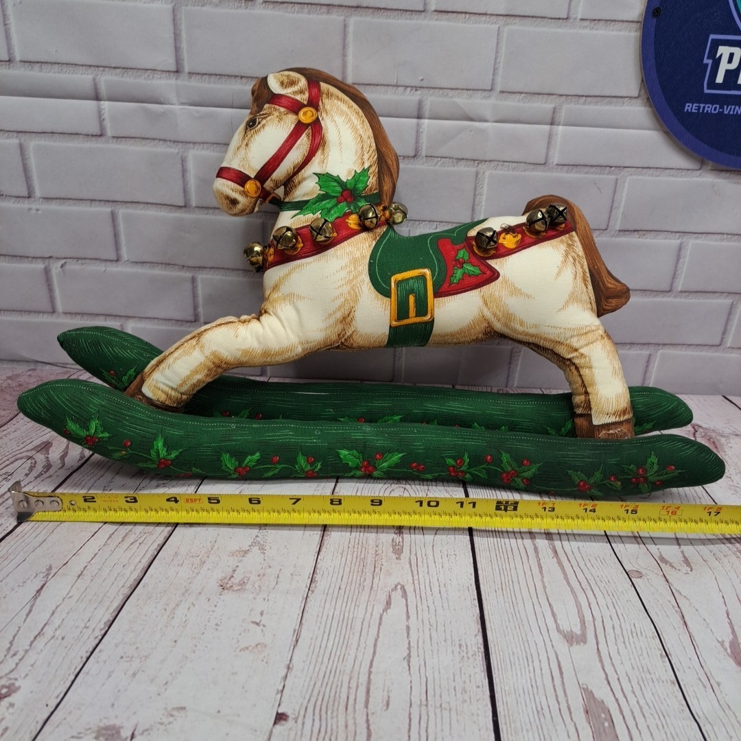 - VTG Rocking Horse Christmas Fabric Figure Decoration Pillow Country Farm W/Bells