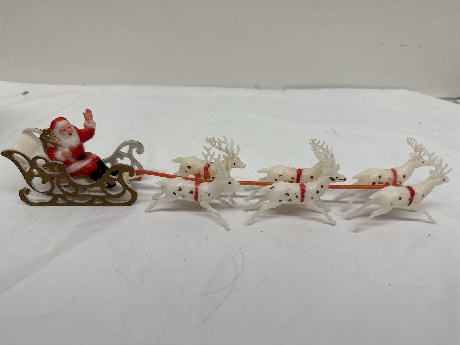 - VTG Santa Sleigh Reindeer Christmas Miniature Plastic Decoration Hong Kong