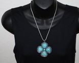 - VTG Silver Tone Metal Faux Turquoise Southwestern Boho Pendant Necklace 17"+