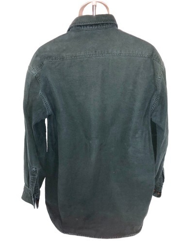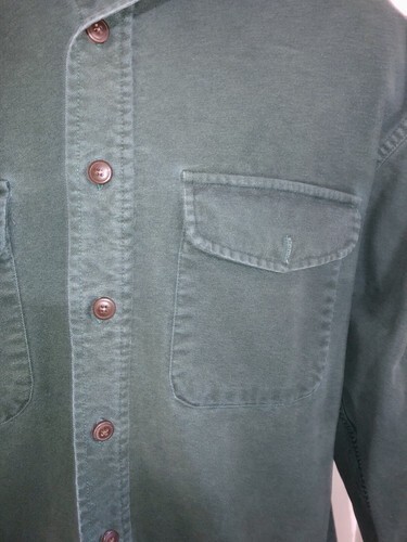 VTG St John?s Bay Button Up Down Shirt LT Chamois Cloth Heavy Flannel Shacket Shirt Jacket Green Pockets Vintage