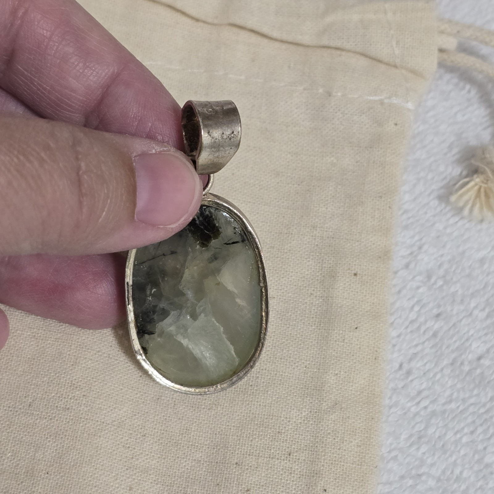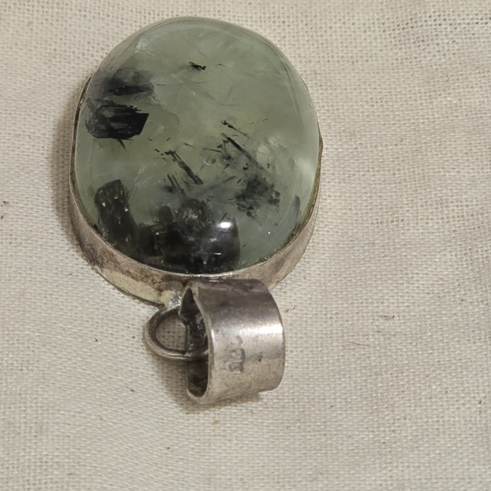 - VTG Sterling Silver Pendant Genuine Finite Gemstone w/ Black Tourmaline 18g