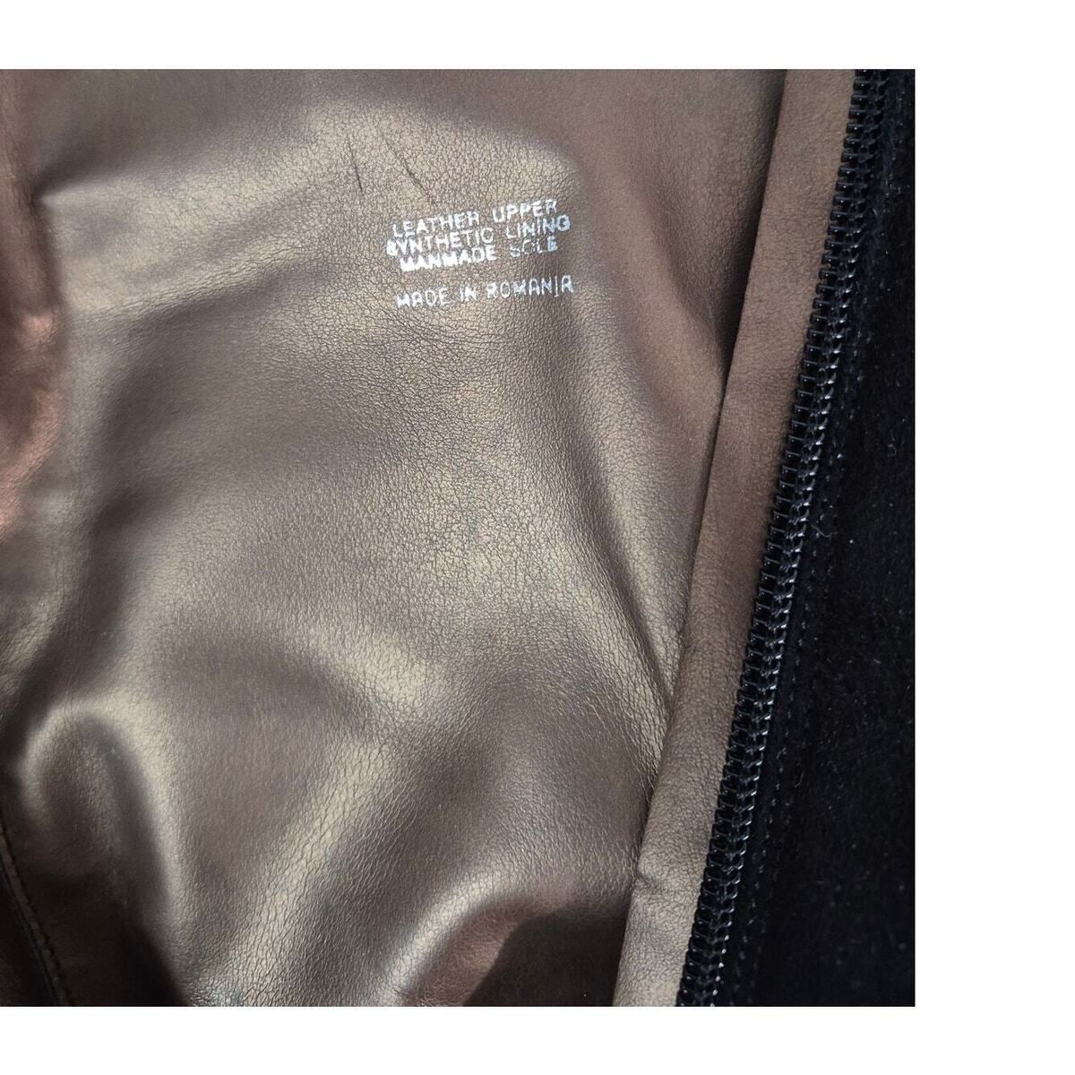 Steven Black Suede Leather Dress Boots Stiletto Heels NWOB Sz 9.5 with inside zipper closure. It is lined in bronze leather and leather soles made in Romania. Perfect new condition, no box.