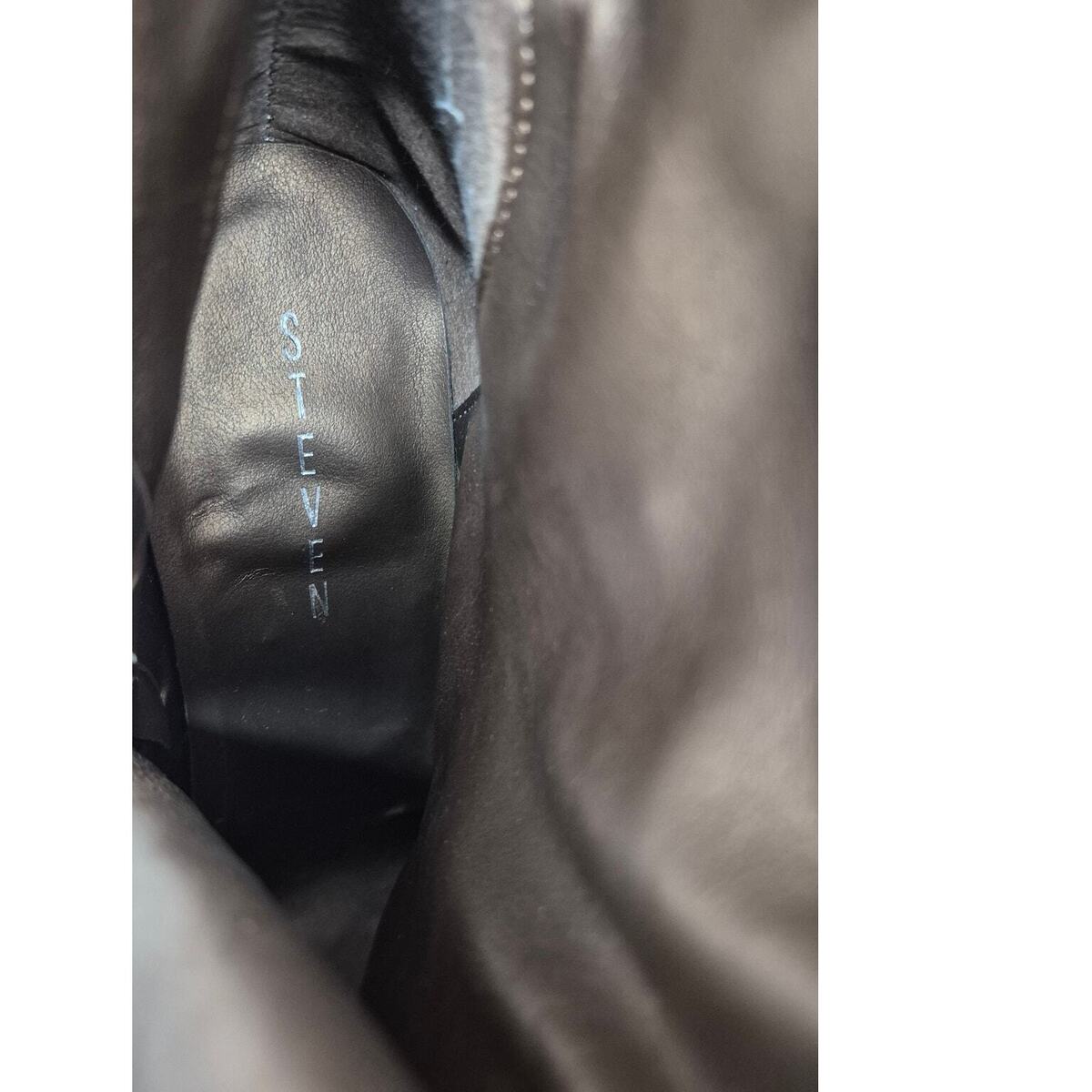 - VTG Steven Black Suede Leather Dress Boots Stiletto Heels NWOB Sz 9.5