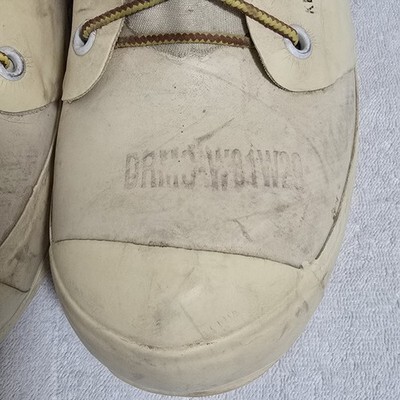 ***Good pre-owned condition. Rubber material shows some discoloration, age wear, and surface marks throughout. Both boots have creasing and a few areas with cracking or peeling at the top edges (see photos). Laces are aftermarket replacements. Soles solid and valves intact. Comes exactly as pictured. Please see photos.***