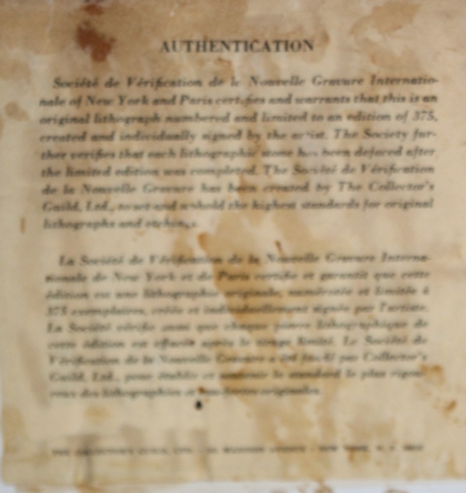 VTG original lithograph of France River limited ed COA Societe de Verification