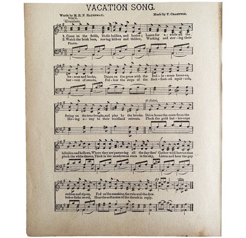 - Vacation Song Sheet Music 1892 Victorian Voice And Piano Ephemera DWY10A