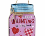 - Valentine's Day Mason Jar Wall Plaque Country Hearts Jute Bow PInk Red Wood NEW