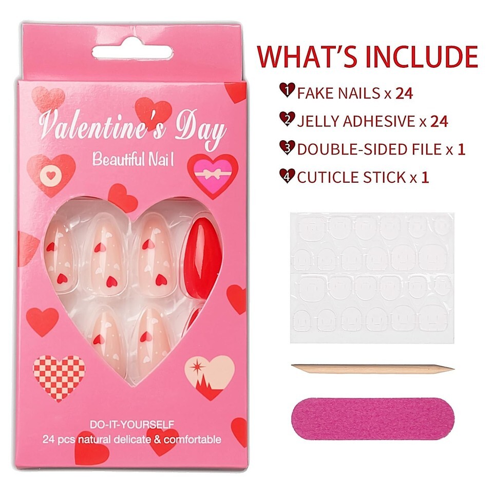 Valentine's Day Press on NailsValentine's press on nails with a red heart pattern makes you look more charming. Easy to create a Valentine's Day happy atmosphere during Valentine's Day time.