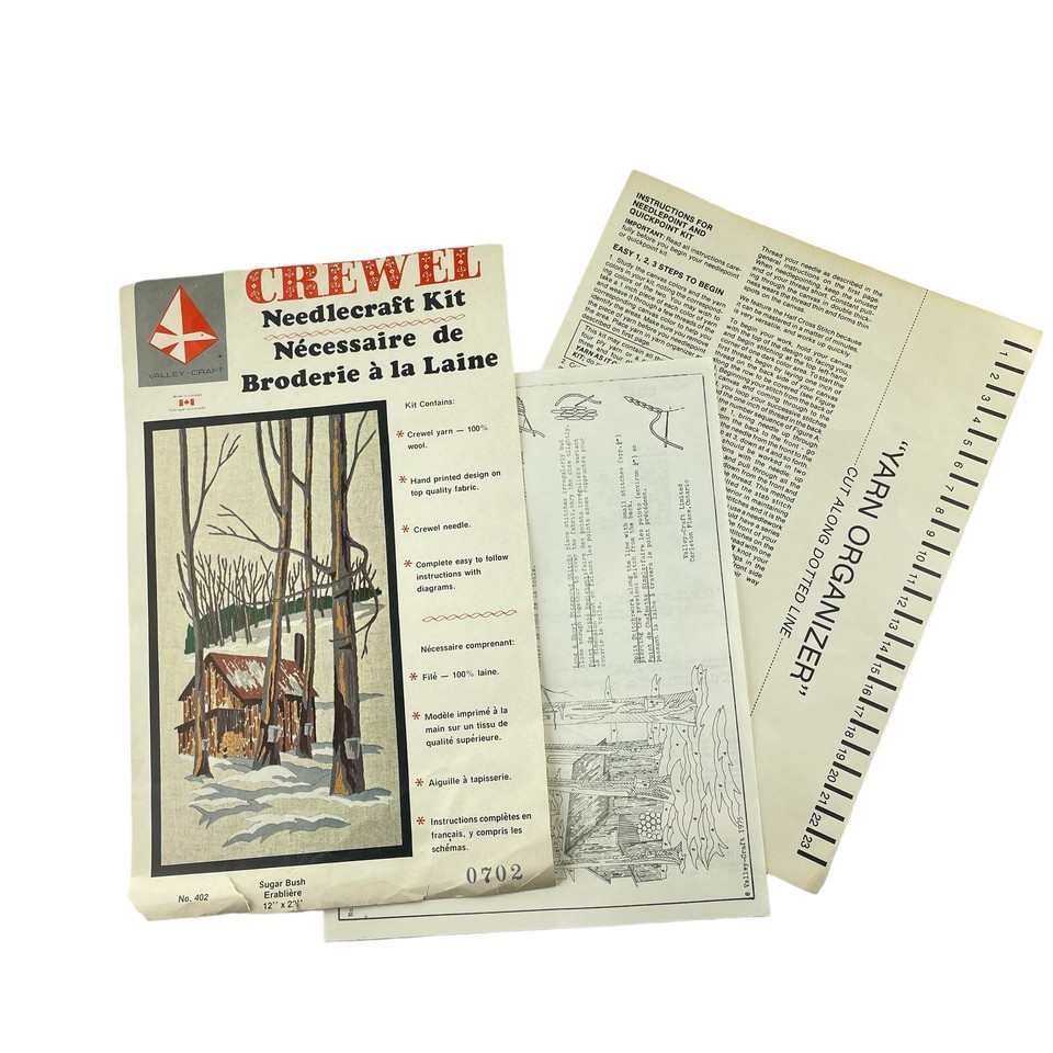 - Valley-Craft Crewel Needlepoint Canvas Sugar Bush Maple Syrup Shack Forest 1975