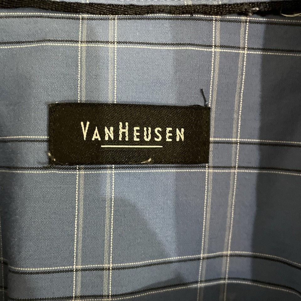- Van Heusen Button Down Short Sleeve Shirt Air Force Blue Square/Plaid Pattern XL