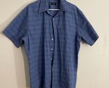 Van Heusen Button Down Short Sleeve Shirt Air Force Blue Square/Plaid Pattern XL
