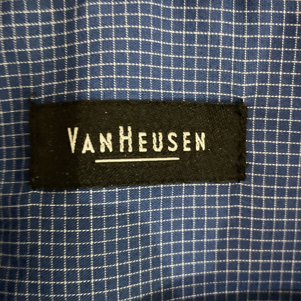 - Van Heusen Button Down Short Sleeve XL Shirt Top Men Pocketed Micro Checkered