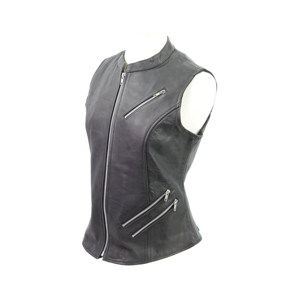 Ladies Biker, 5 Pocket, Double Zip Premium Leather Vest