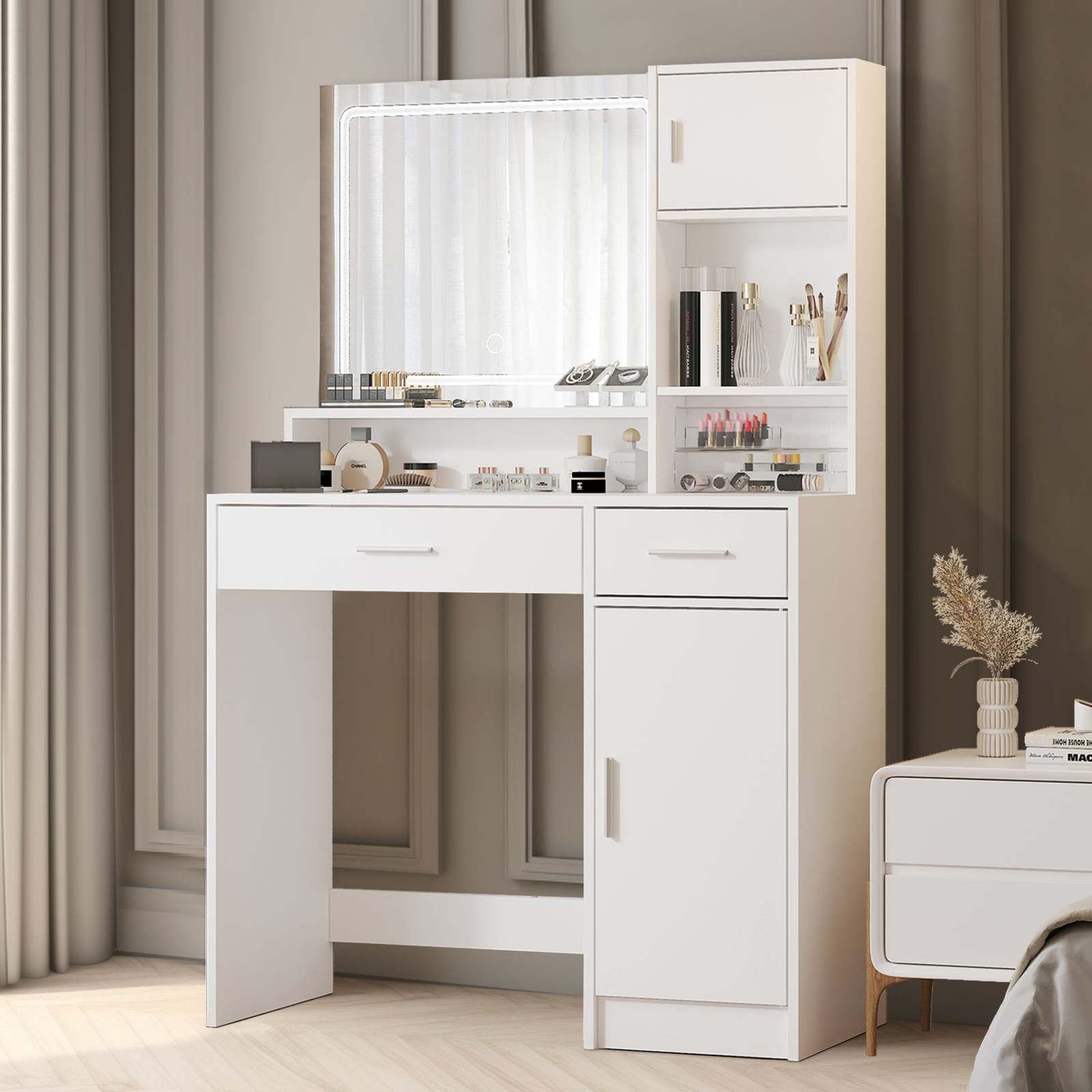 The vanity table provides sensible storage space. Specially designed cabinet doors with partitioned shelves allow for organized storage, preventing items from falling. The intuitive design enables you to quickly locate your needed items, enhancing makeup efficiency.