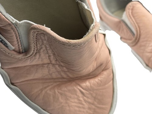 - Vans Off the Wall Sneakers Women 7.5M Shoes Salmon Pink Leather Slipon Comfort