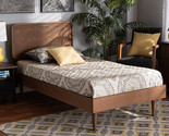 Accent your bedroom with the retro charm of the Varick bed. Made in Malaysia, the Varick is constructed from sturdy, walnut finished wood that adds warmth to any space. The headboard features rounded corners and inset detailing for a cool, mid-century inspired look. Requiring assembly, the Varick utilizes wood slats for mattress support, which eliminate the need for a box spring. With fantastic visual appeal and a cozy design, the Varick bed brings classic charisma to the modern bedroom.