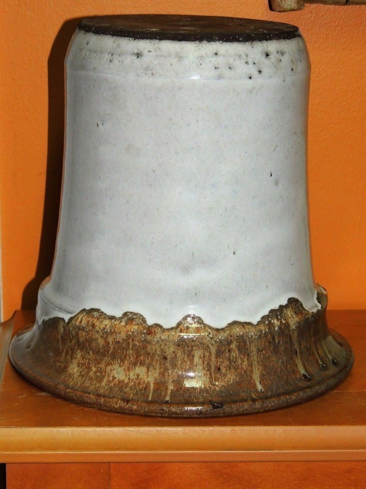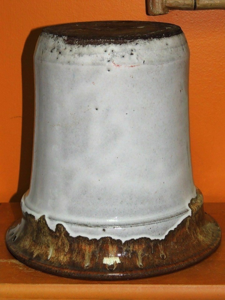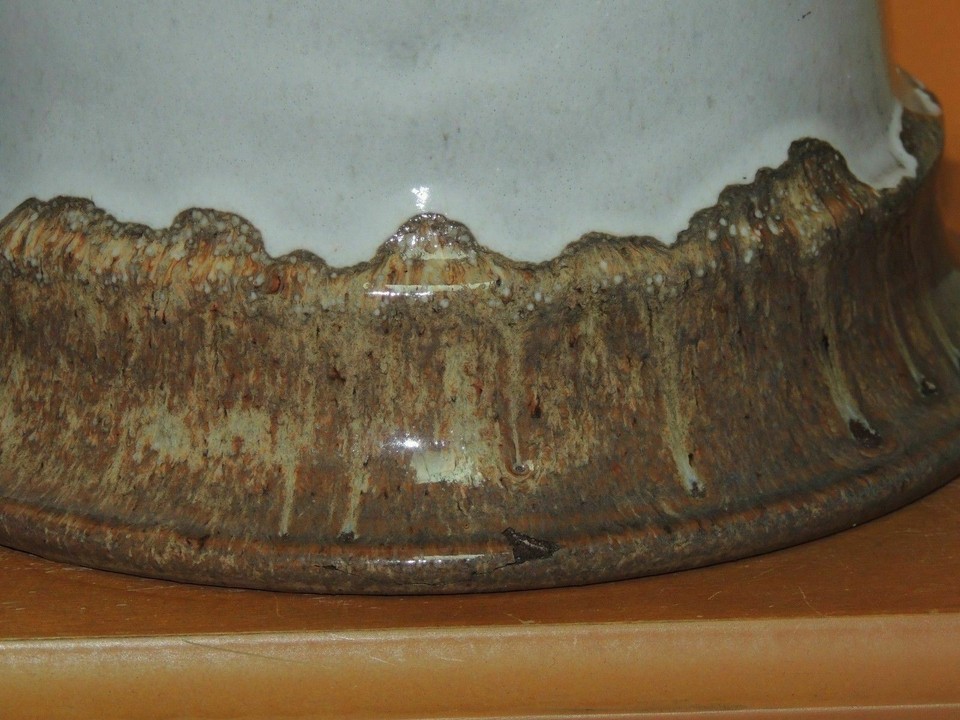 - Vase/ Pot 7.75" Polychrome Brown & White Glaze thick drip glaze Vintage Antique
