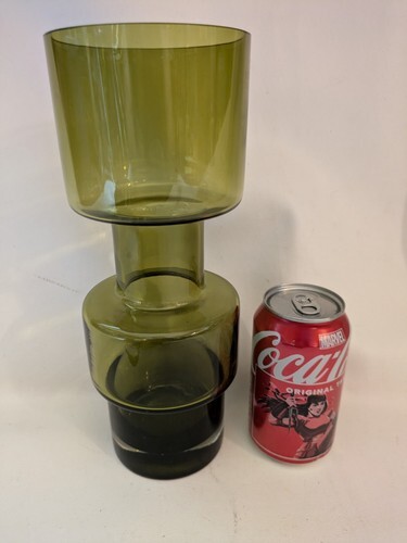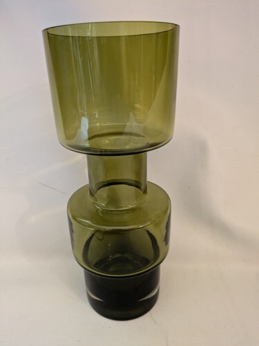 Questo splendido vaso vintage e un must per ogni collezionista di vetreria. Con un bellissimo design a cerchio verde e un motivo astratto, aggiungera sicuramente un tocco unico a qualsiasi stanza. Il vaso misura 28 cm di altezza e 11 cm di larghezza, il che lo rende la dimensione perfetta per esporre fiori o come pezzo decorativo autonomo. Realizzato in Finlandia da Lasi Riihimaki, questo originale vaso in vetro artistico e soffiato a mano e vanta uno stile di produzione elegante e senza tempo. Il vaso viene fornito con custodia ed e ideale per essere esposto in una varieta di ambienti, dall'arredamento della casa all'ufficio. Non perdere l'opportunita di possedere questo pezzo unico nel suo genere.