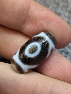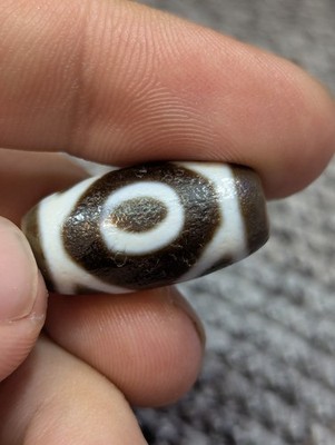 - Vecchio amuleto tibetano a 2 cerchi occhi in pietra agata Dzi Bead #16