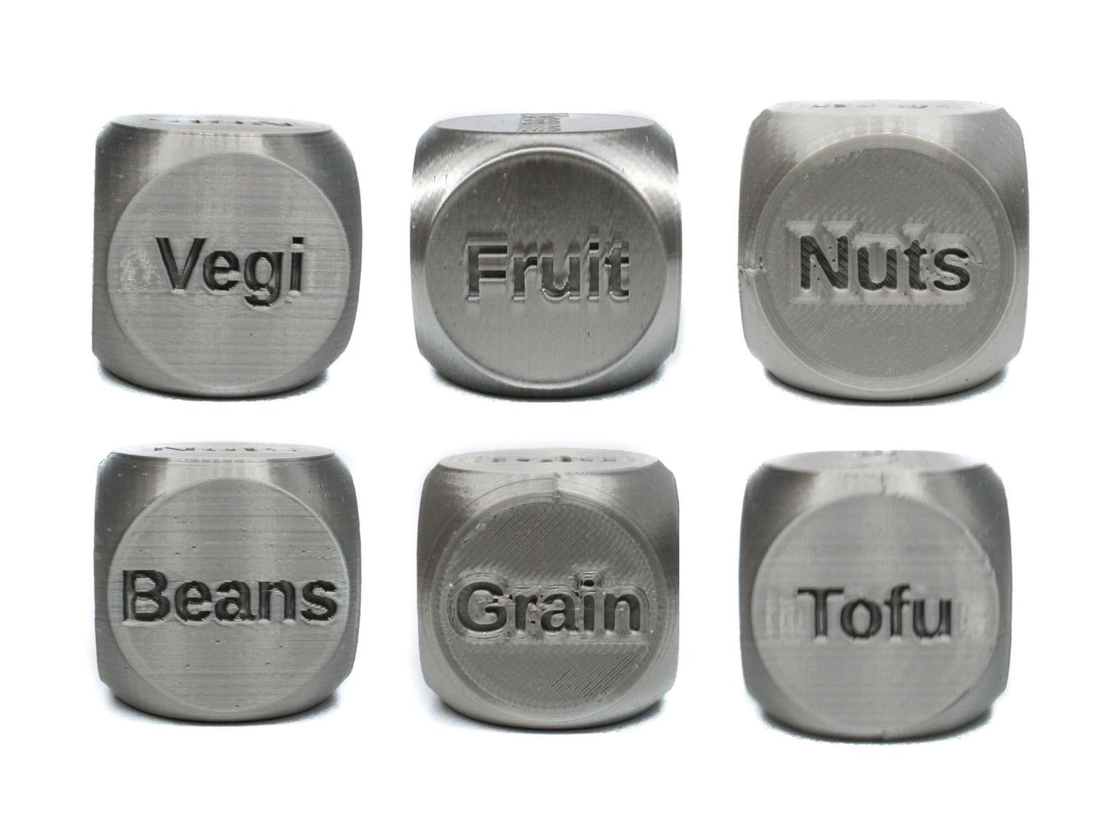 Leave your next healthy meal/snack up to fate with these vegan/vegetarian food dice. Choose from any color. Each is custom made upon order from a biodegradable and plant based plastic.