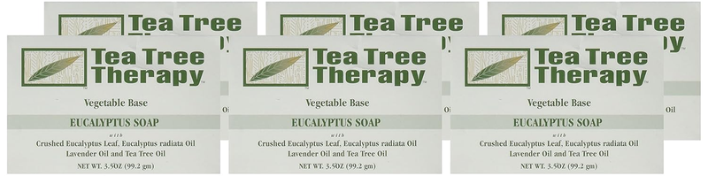 Tea tree therapy eucalyptus bar soap, 3.5 ounce-6 per case. A soap bar which contains no animal derived products. Tea tree oil, a known germicide, which is incorporated at an effective level of 2 percent to alleviate or remove skin problems, making this soap a truly antiseptic soap bar. Inclusion of natural moisturizers give the soap bar a gentle and mild application to the skin. Ingredients: sodium palmate, sodium palm kernelate, purified water, eucalyptus Australian oil, macadamia nut oil, tea tree oil, crushed eucalyptus leaves, sodium chloride, tetra sodium edta, tetra sodium etidronate shelf life: 999 days 3.5 ounce.